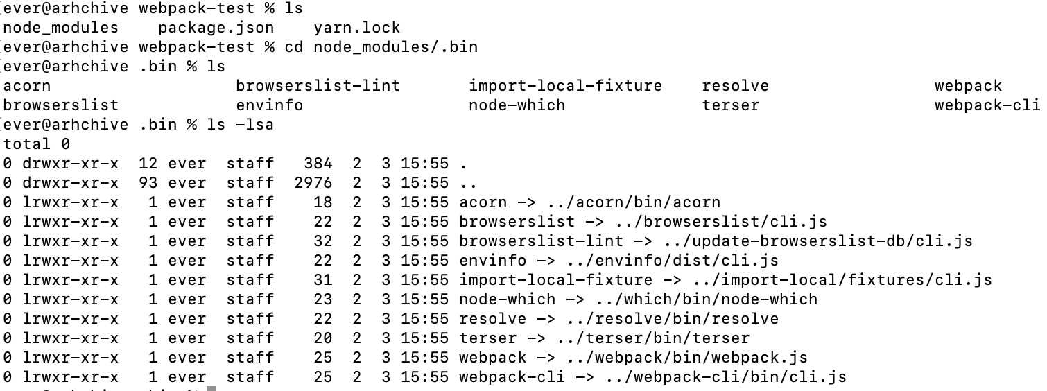 安装好之后可以在./node_module/.bin目录下看到webpack和webpack-cli两个指令。